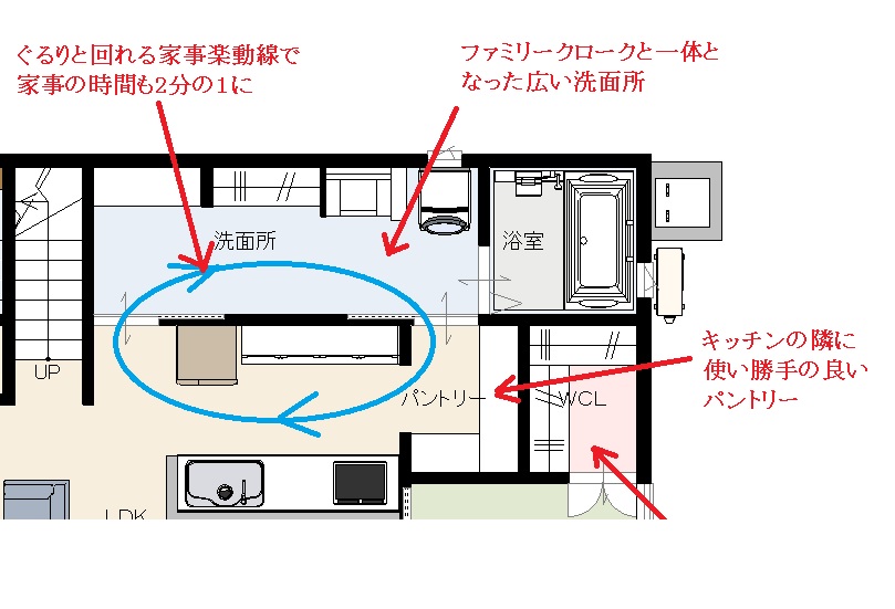 それが家事楽動線の場合、キッチンから10歩以内で洗濯物が干せるのです。