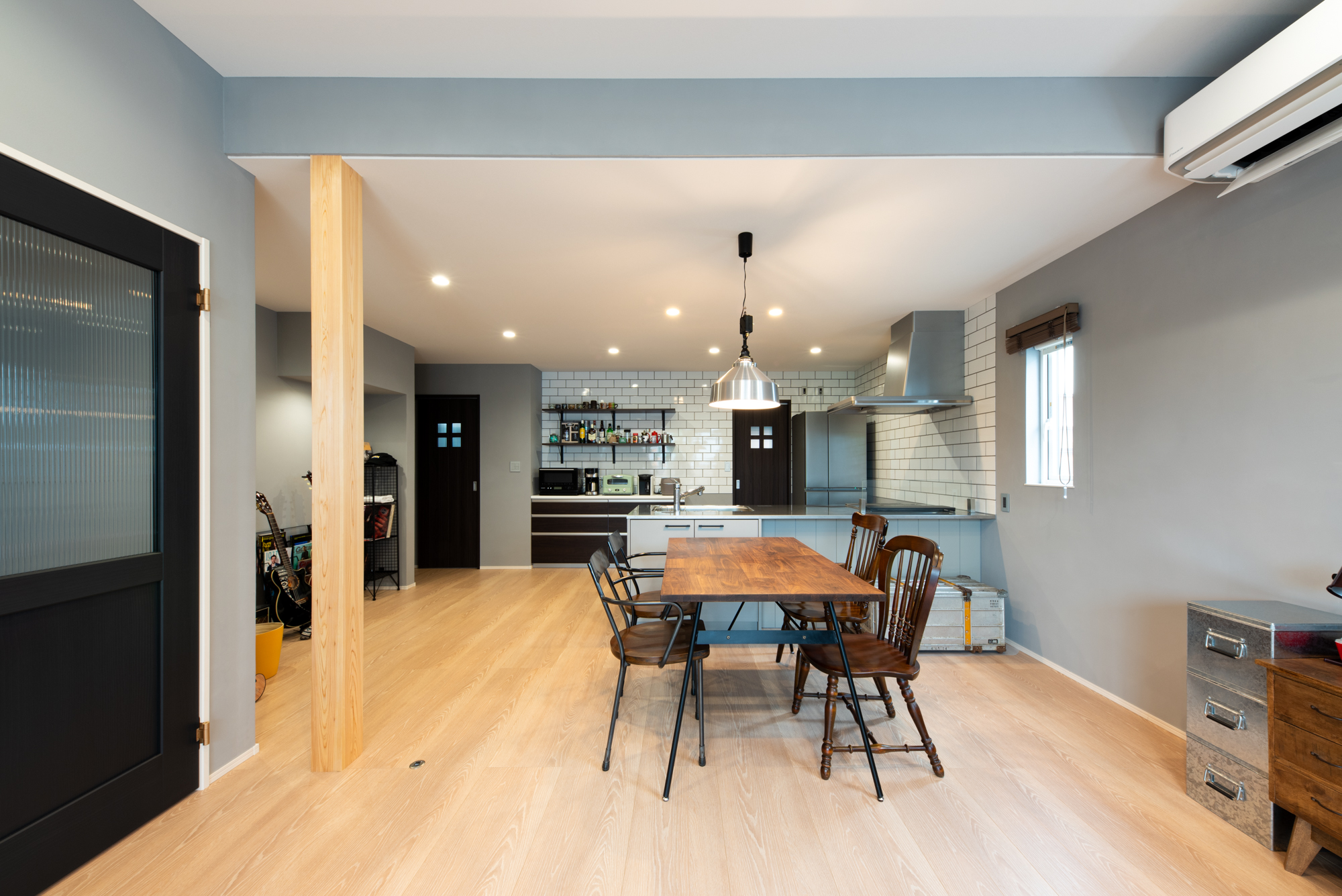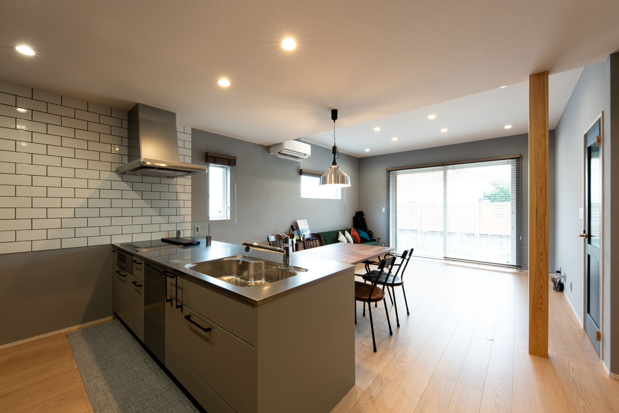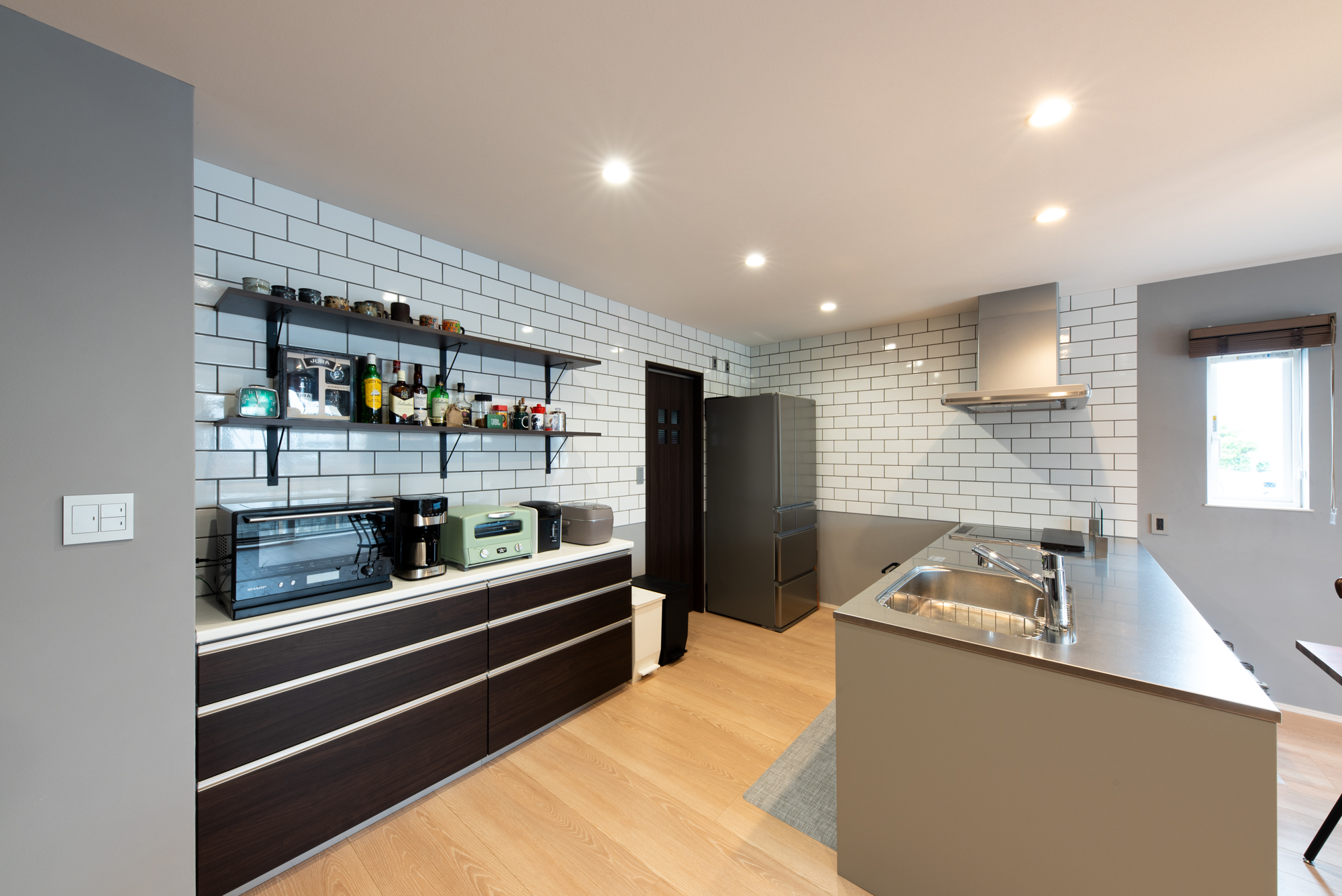 LDKにはブルックリン調のタイル貼りと珪藻土を塗っているので、機能的でお洒落な仕上がりです。