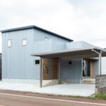 グレーのガルバと板張りがスタイリッシュな家