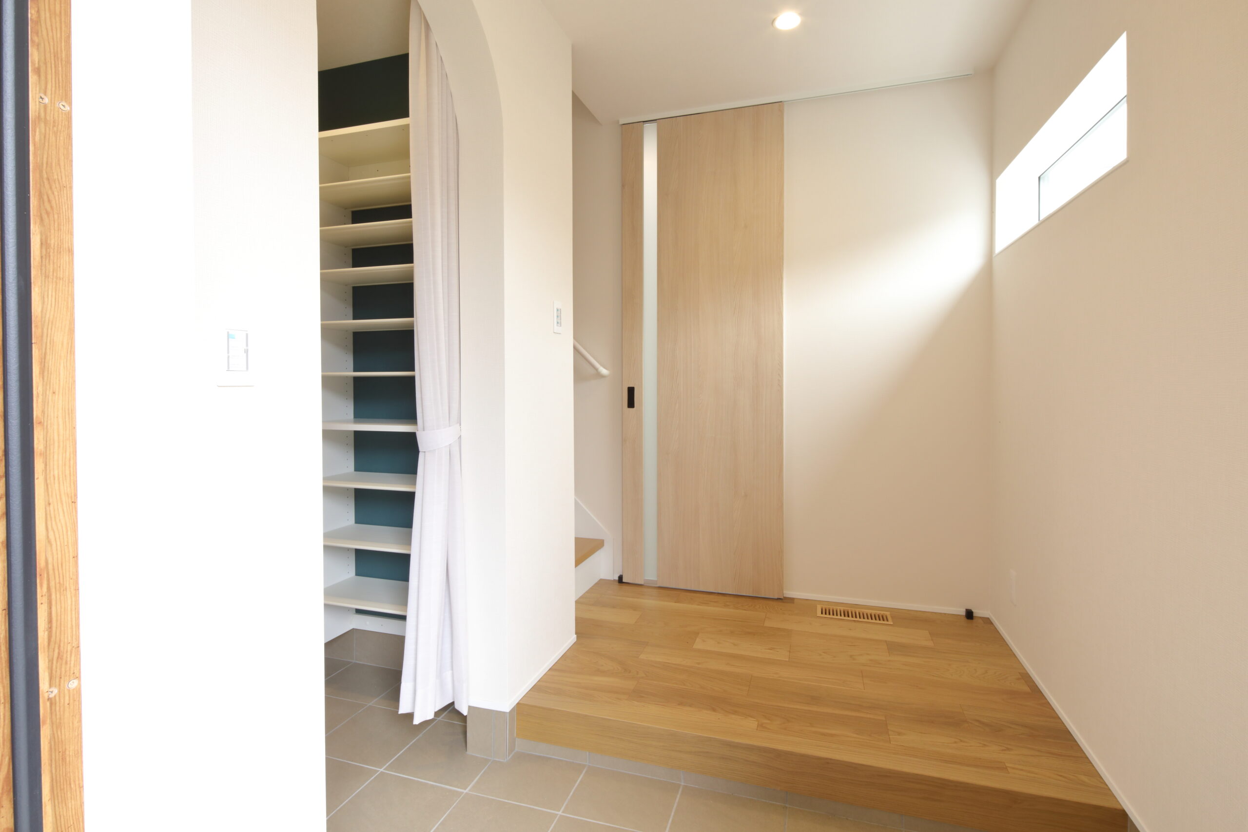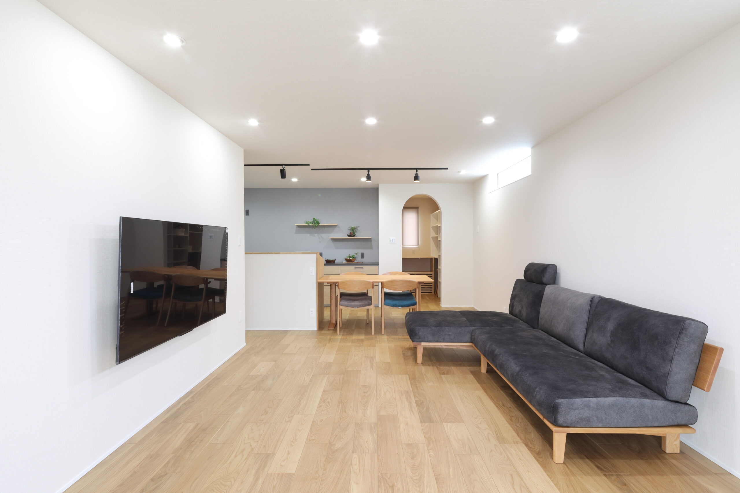 20.4帖の広々としたLDK を中心に、水回り・ファミリークローク ・主寝室 を回遊できる動線は必見。 「2階建てだけど、将来のことを考えて平屋の便利さも欲しい」 そんな賢い選択をされた、デザインと機能性が融合したお住まいです。