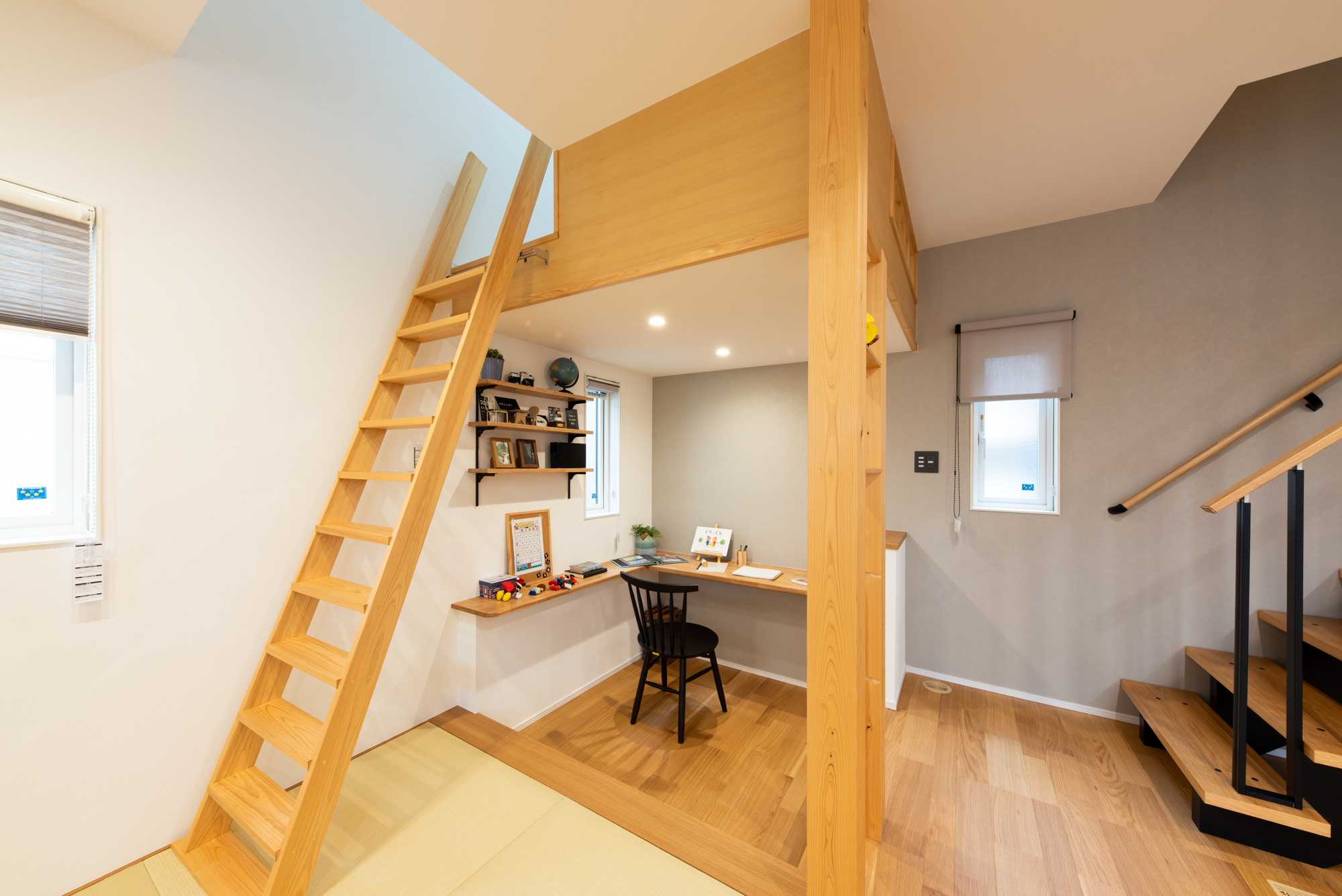 リビングからはしごを上るとまるで隠れ家のような子供が大喜びの面白BOX空間