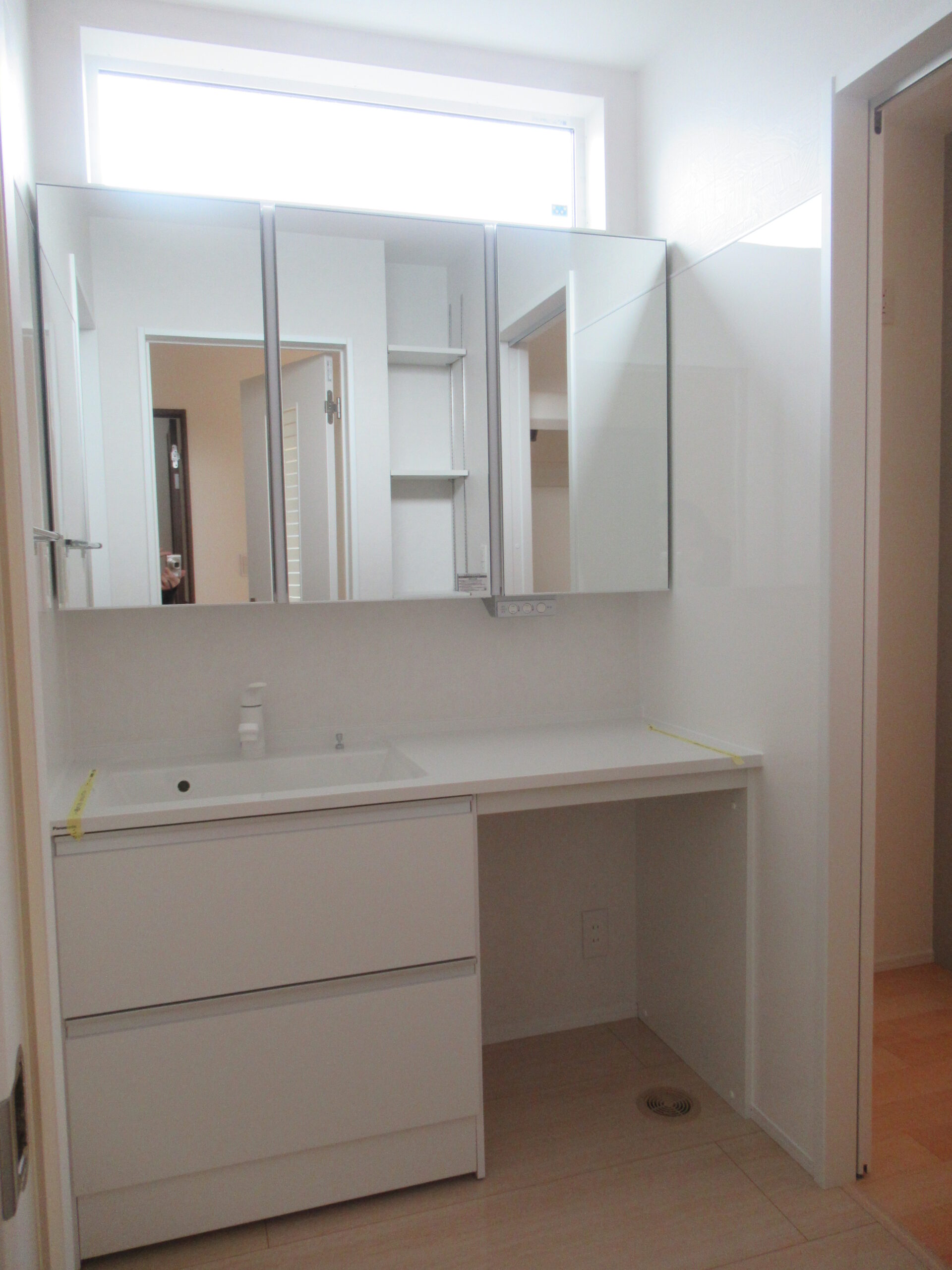 洗面化粧台を広くしたので、お子さん達が並んで朝の身支度が出来ます。